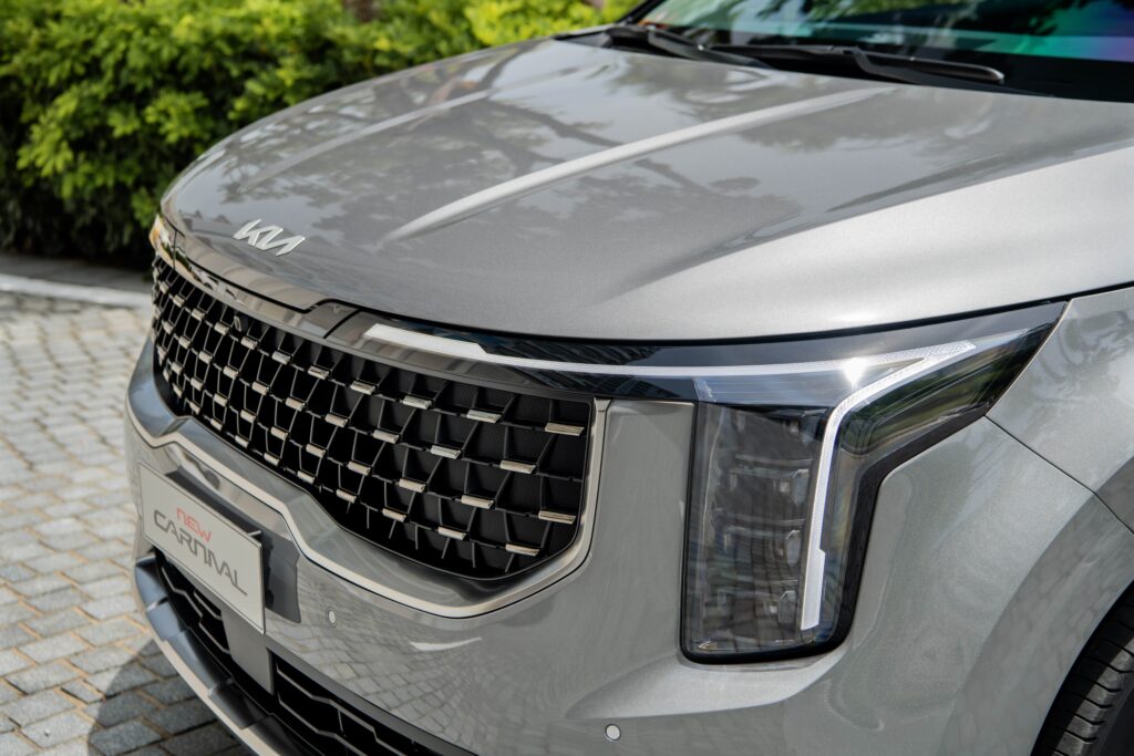Carnival rất nhanh nhạy trong việc bắt "trend" khi sở hữu thiết kế lưới tản nhiệt nối liền hệ thống chiếu sáng vốn đang được nhiều thương hiệu ô tô ưa chuộng. Đi cùng hệ thống đèn pha thích ứng thông minh là dải đèn ban ngày LED, đèn sương mù trước LED.