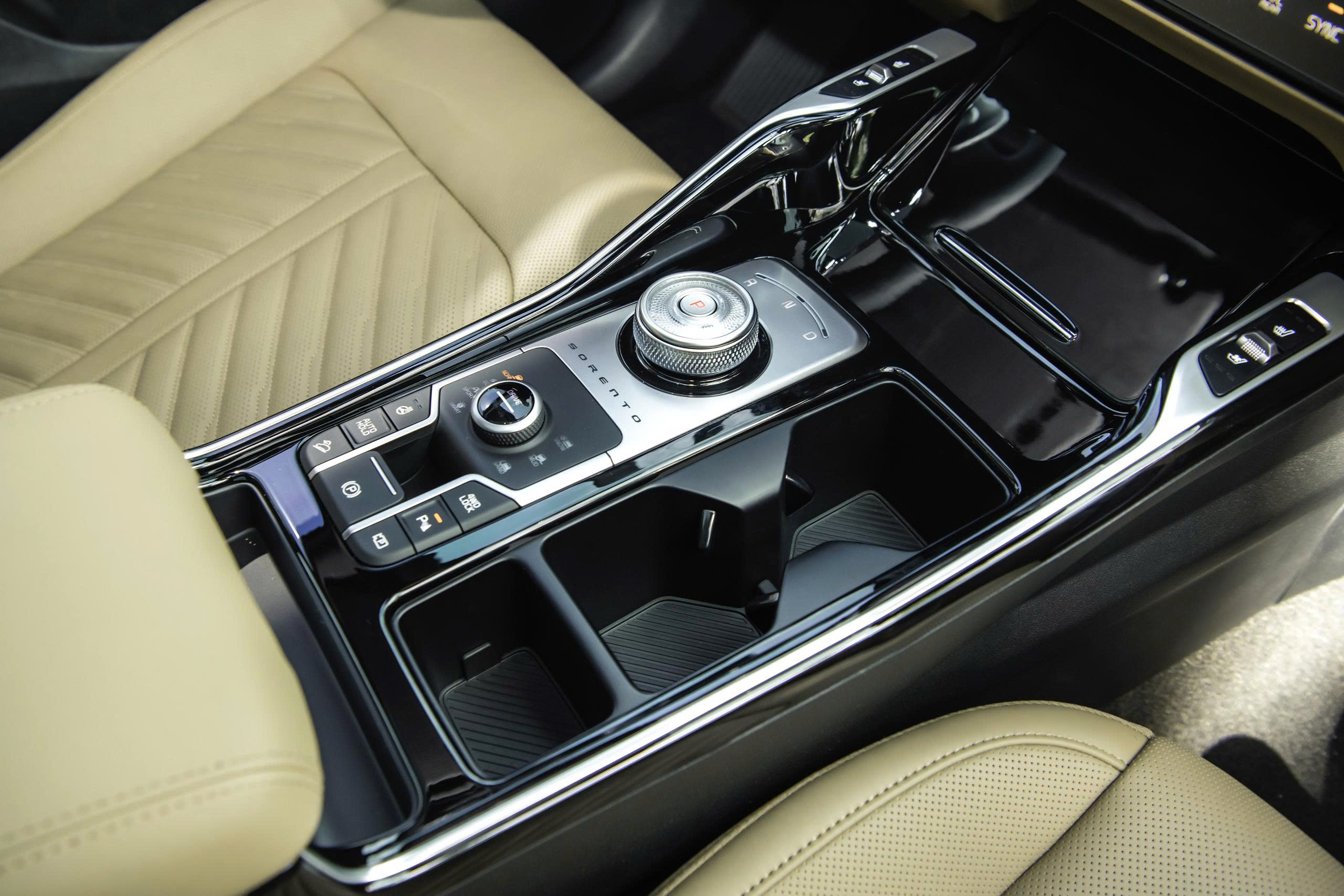 Ngoài ra, các trang bị nội thất trên Sorento còn có thể kể đến vô lăng đa chấu thể thao bọc da, tích hợp các phím chức năng với nhận diện logo mới và chức năng sưởi, lẫy chuyển số; cửa sổ trời toàn cảnh Panorama;rèm cửa sau; cổng USB tới từng vị trí ghế; phanh tay điện tử; đề nổ từ xa,...